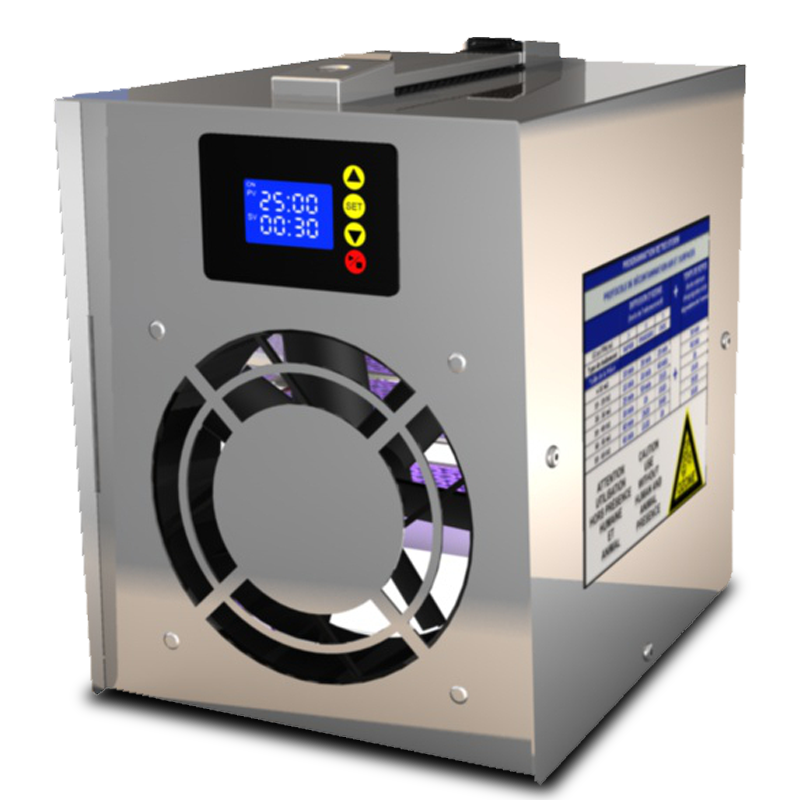 Elle génère et propulse de l’ozone dans la pièce afin de détruire jusqu'à 99,99 % des Composés Organiques Volatiles (COV) présents dans l’air et sur les surfaces : table, poignées de porte, tissus...